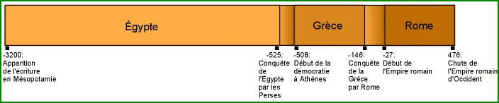 | La civilisation égyptienne | La civilisation grecque | L'Empire romain et la Gaule |