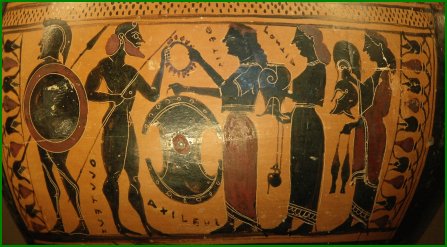 ![]() Le combat entre Achille et Hector, sous les yeux d'Athéna et Artémis |