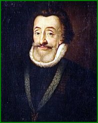 Le chef des protestants françaisIl est le fils d'Antoine de Bourbon, descendant du roi Louis IX, chef du parti protestant français et de Jeanne d'Albret, reine de Navarre. Il est élevé dans les idées religieuses de la confession calviniste et dès 1569, il devient le chef des protestants français. En 1572, il est marié à Marguerite de Valois, sœur du roi Charles IX. Il n'échappe au massacre de la Saint-Barthélemy du 24 août 1572, qu'en abjurant le calvinisme. |